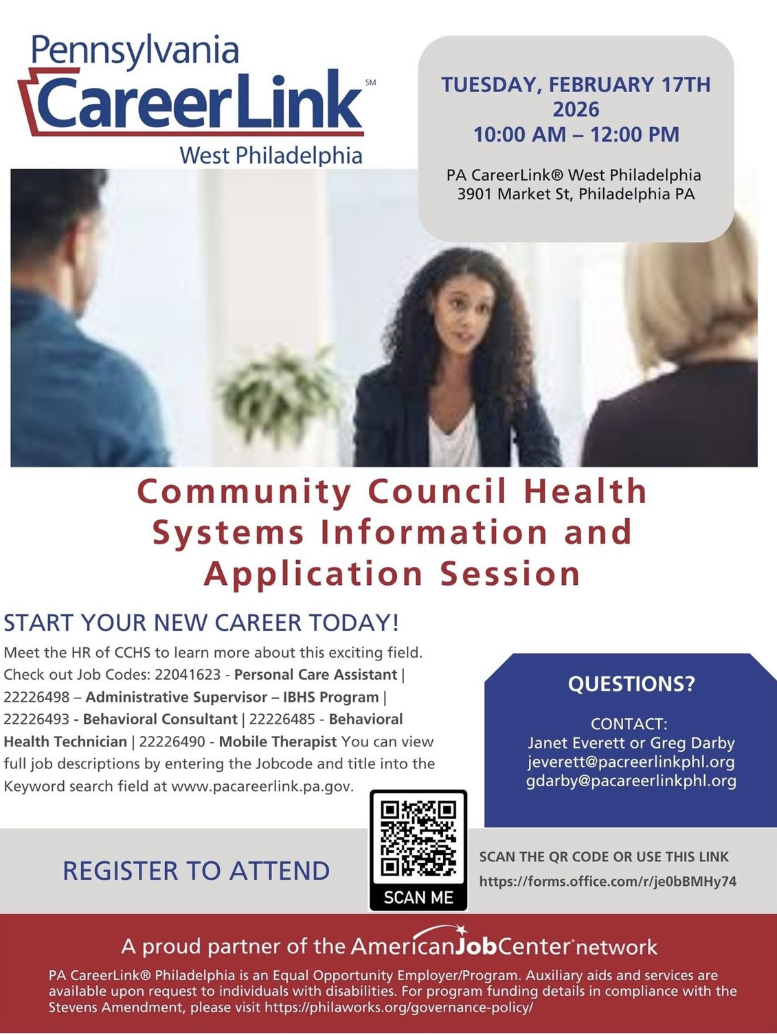 PA Career Link 1617 JFK Blvd., 2nd Floor, Philadelphia, PA, United States -