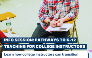 Info Session: Pathways to K-12 Teaching for College Instructors By Rochelle Pratt|2025-12-02T16:46:16+00:00December 2nd, 2025|General Resource, Provider Resource|0 Comments Read More